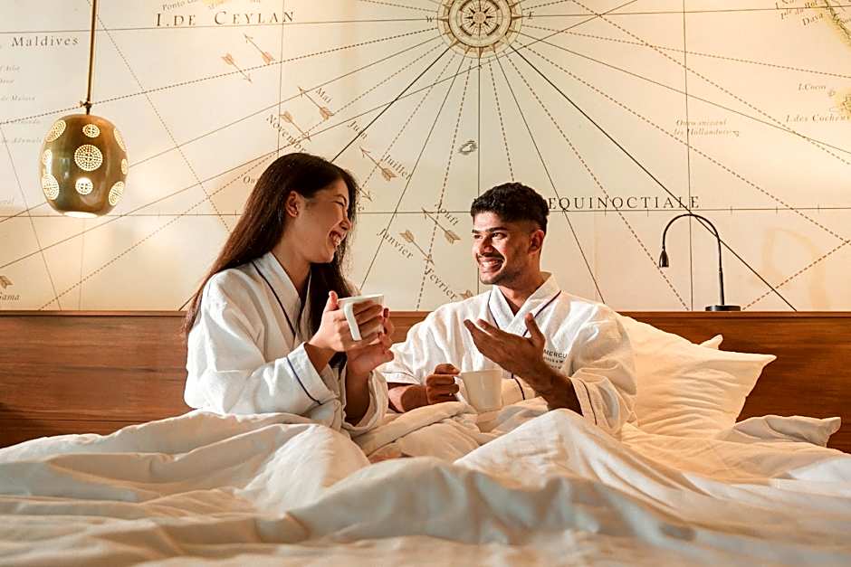 Beach Villa is 721 square feet and includes a queen-size bed 150-154 width plus extra beds on demand, desk, satellite tv , tea and coffee making facilities , safe, and bathrobes.